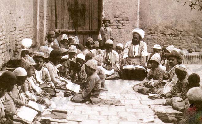 تعلیمات اولیه براى اطفال یاد دادن حروف عربى و حرکات و تلفظ صحیح آنها، به منظور خواندن قرآن مجید بود. بعد از مدتى که این تعلیم با موفقیت به پایان مىرسید، خواندن قرآن آغاز مىگشت و هنگامى که طفل موفق به ختم قرآن مىگردید به شکرانه این امر مهم مهمانىاى در خانه او به ناهار ترتیب مىیافت و از معلم و همشاگردیهاى وى دعوت مىشد. ولى کسانى که به ادامه تحصیل مىپرداختند، خوشنویسى یاد مىگرفتند و به موازات آن خواندن کتابهاى فارسى مثل گلستان سعدى، تنبیه الغافلین، اخلاق ناصرى، نصاب الصبیان، قابوسنامه و نظایر آنها نیز به شاگردان تعلیم مىشد و طرز نامهنگارى از روى منشآت نویسندگان نامى سابق، مثل قائم مقام و غیره تدریس مىگشت. حساب نیز آموخته مىشد، ولى نه بر سبک اعداد بلکه به طور سیاق. اینها تعلیماتى بود که براى زندگى در محیط اجتماعى آن روز کافى به نظر مىرسید لیکن کسانى که مىخواستند بیشتر بخوانند، غالباً به مدارس طلاب دینى مىرفتند و از محضر مدرسان دانشمند بهره مىگرفتند. ناگفته نماند که این عده محدود بود زیرا اولاً بیشتر خانوادهها امکان نداشتند که فرزند خود را به تحصیل بگذارند و ثانیاً علم و دانش نیز، به قدرى که امروزه در امر زندگى مؤثر است، از آن حیث در گذشته نداشت و در نتیجه از طرف خود محصلین نیز کمتر استقبال مىشد.